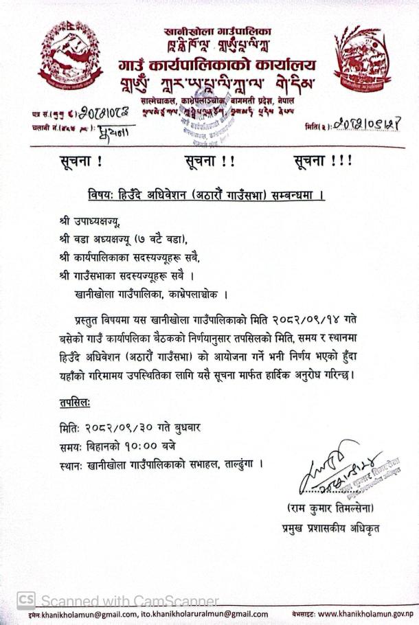 "हिउँदे अधिवेशन (१८औँ गाउँसभा) सम्बन्धमा"