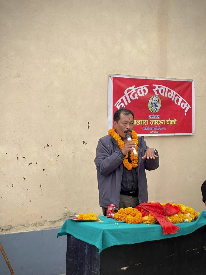 वृहत नि:शुल्क स्वास्थ्य शिविर कार्यक्रममा मिति २०८२ साल कार्तिक २५ गतेका दिन कार्यक्रमका प्रमुख अतिथि गाउँपालिकाका अध्यक्ष श्री ईन्द्र बहादुर थिङज्यूद्वारा वरिष्ठ स्वास्थ्य विशेषज्ञहरुलाई स्वागत गर्दाको र पहिलो दिनको नि:शुल्क स्वास्थ्य शिविर कार्यक्रम झलक