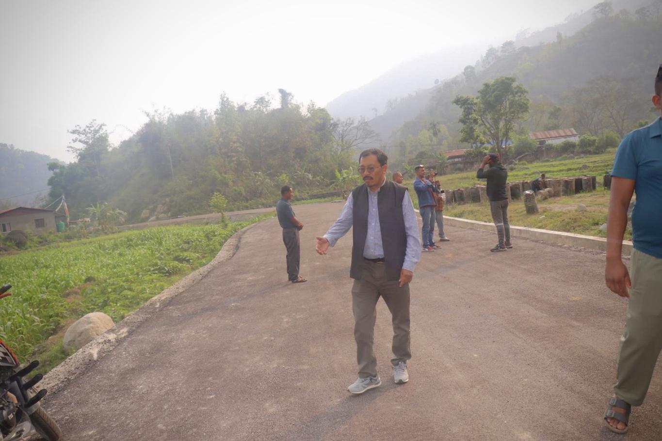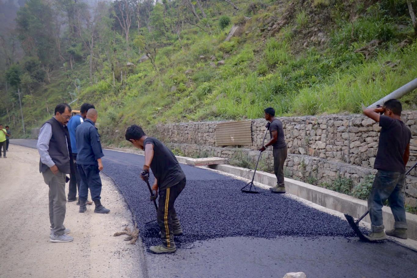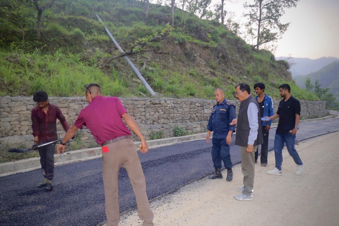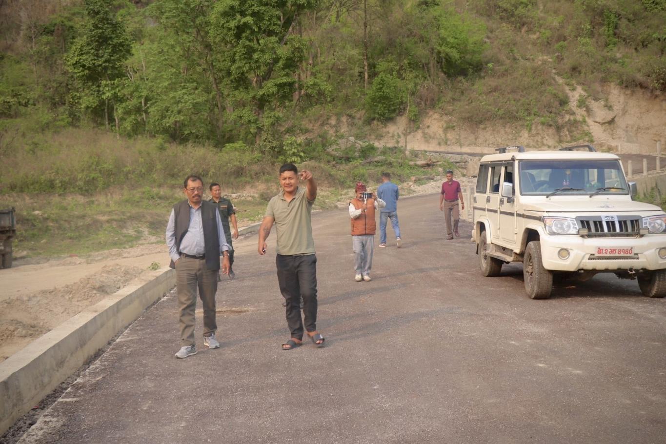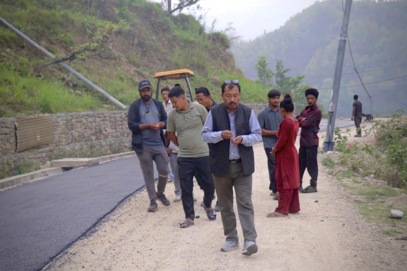 जनमुक्ती मार्ग अन्तर्गत ताल्ढुंगा-सिक्रे सडक खण्डमा हुँदै गरेको कालोपत्रको सदाझैँ निरन्तर अनुगमनको क्रममा आज पनि मिति २०८३ साल बैशाख ०३ गतेका दिनमा गाउँपालिका अध्यक्ष श्री ईन्द्र बहादर थिङज्यू सहित कर्मचारीहरू र पत्रकारज्यूहरूद्वारा अनुगमनको क्रमका फोटो