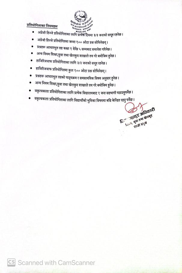 "अतिरिक्त क्रियाकलाप सञ्चालन सम्बन्धमा"