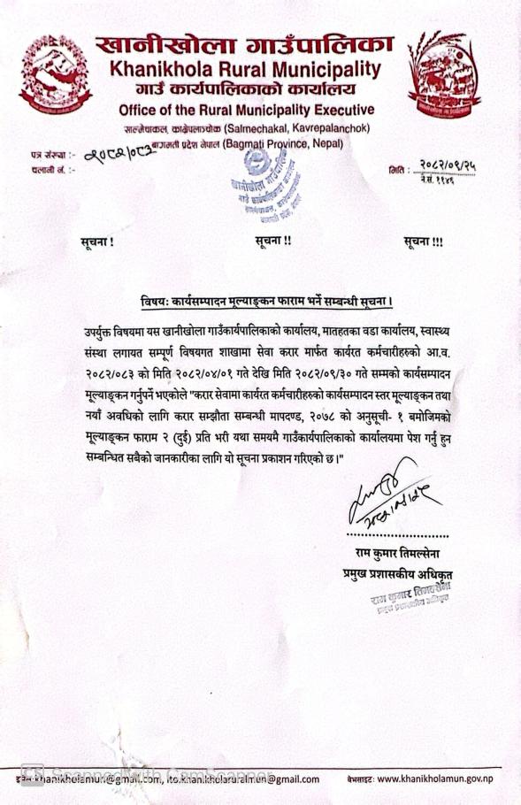 "कार्यसम्पादन मूल्याङ्कन फारम भर्ने सम्बन्धी सूचना"