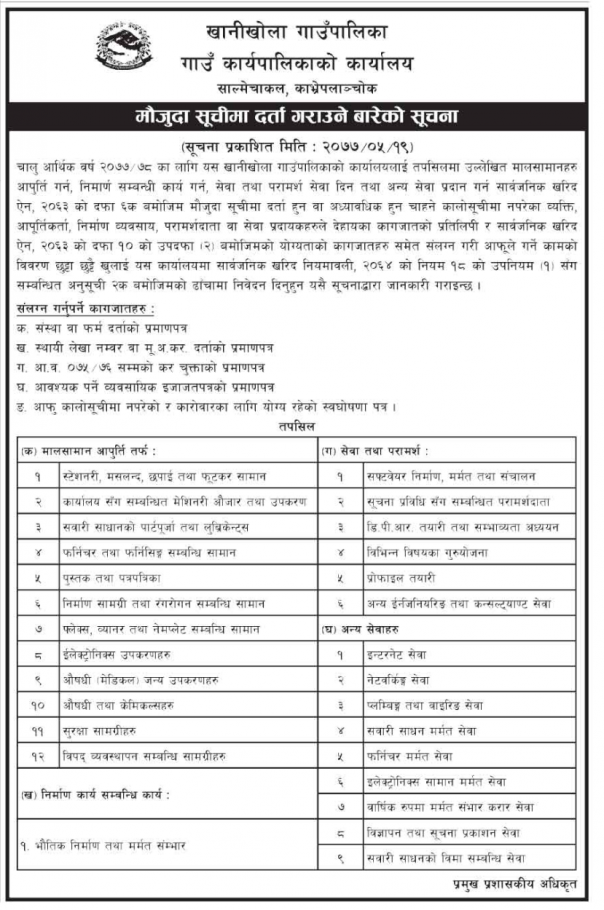 "मौजुदा सूचीमा दर्ता गराउने बारेमा सूचना"