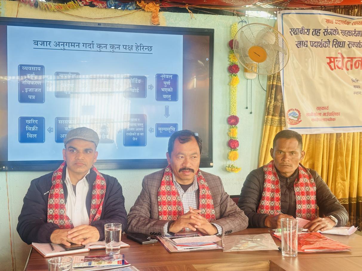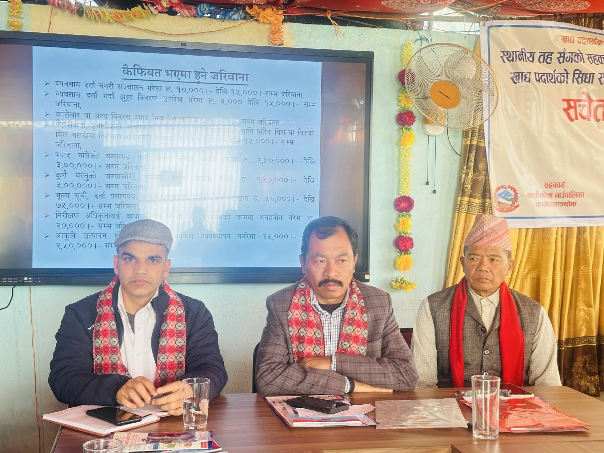 खानीखोला गाउँपालिकाको सहकार्य तथा खाद्य प्रविधि तथा गुण नियन्त्रण डिभिजन कार्यालय, धुलिखेलको आयोजनामा स्ट्रिट फुडको स्वच्छता, रङको प्रयोग, खाद्य पदार्थको सिधा सम्पर्कमा आउने कागजको प्रयोग सम्बन्धि सचेतना कार्यक्रमको झलक