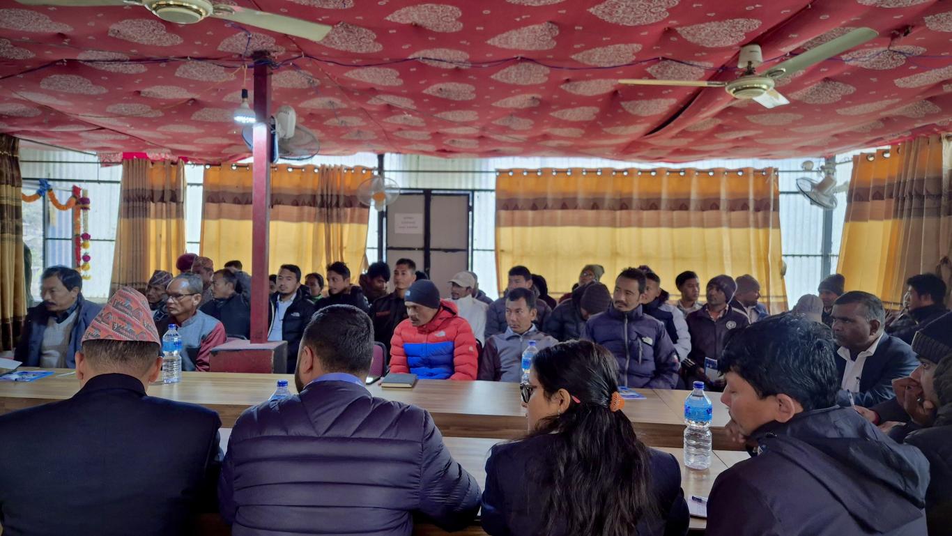 आज मिति २०८२ साल मंसिर २५ गतेका दिन गाउँपालिकाका अध्यक्षज्यू श्री ईन्द्र बहादुर थिङज्यूको विशेष उपस्थितिमा र प्रमुख प्रशासकीय अधिकृत श्री राम कुमार तिमल्सेनाज्यूको उपस्थितिमा गाउँपालिकाका विभिन्न शाखाका शाखा प्रमुखज्यूहरू र सम्पूर्ण सातै वटाका वडा सचिवहरूसँग समिक्षा बैठक बस्दाको केही झलक